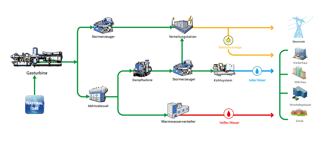Erdgas verteilte Energie nutzt haupts?chlich Erdgas als Brennstoff, um Energiekaskadenauslastung zu realisieren. Es ist ein sauberes, effizientes, flexibles Energieversorgungssystem und es ist ein wichtiges Mittel zur effizienten Nutzung von Erdgas. Erdgas verteiltes Energiesystem. Edgas verteiltes Energiesystem nutzt die Abw?rme von Rauchgas nach Stromerzeugung, um die Sommerk?hlung, Winterheizung und die Versorgung von Warmwasser für das ganze Jahr zu erreichen. Es kann viele Klimaanlage Strom sparen. Es hat hohe Energieeffizienz, bessere Sicherheit und bessere wirtschafzliche Ertr?ge usw.